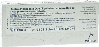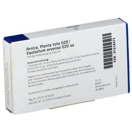 1 ampoule contains: Arnica, Planta tota Rh Dil. D20 0.5 g / Equisetum arvense Rh Dil. D20 0.5 g - last stage potentized together.