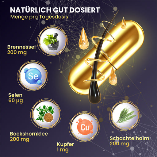 COSAWELL capsules were developed based on the latest scientific findings and manufactured under strict quality guidelines. They contain, among other ingredients, horsetail, nettle, and fenugreek. COSAWELL also contains selenium, which helps maintain normal hair, and copper, which contributes to normal hair pigmentation.