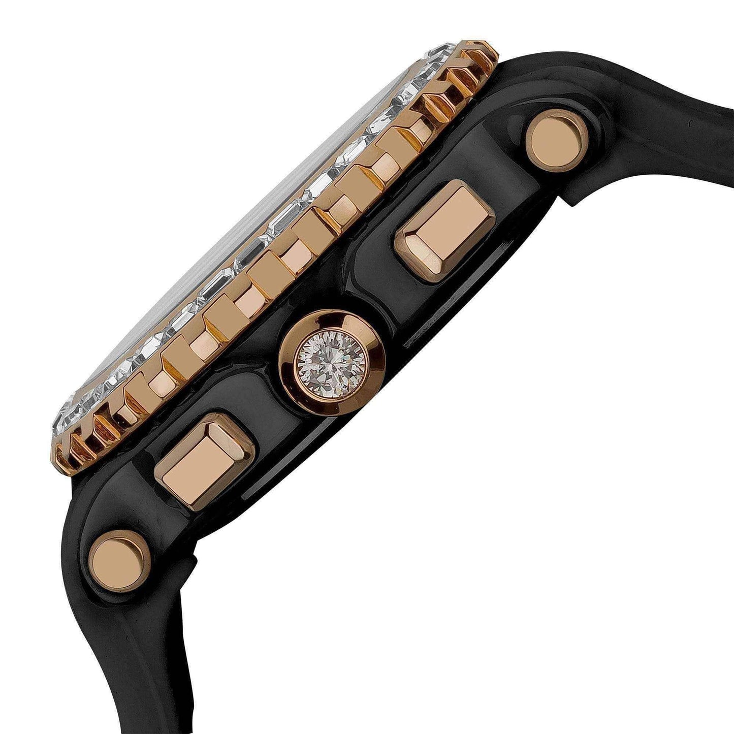 With crystal baguettes on the bezel, this multifunction Black and rose gold watch will complete your outfit for any occasion and bring out the sparkle in your day.