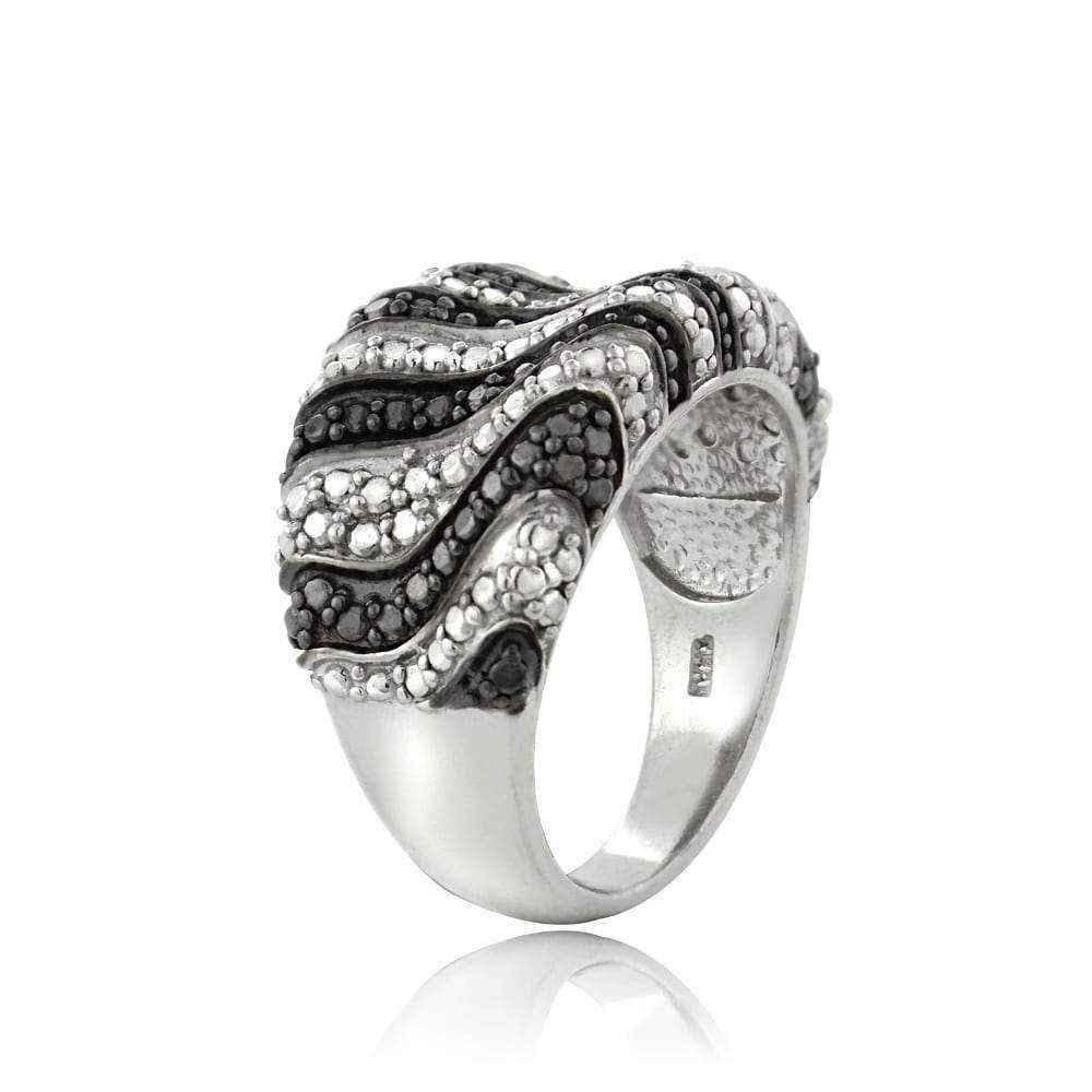 Black Diamond Ring. Add style to your wardrobe with this stunning zebra stripes diamond ring. This jewelry features one genuine black diamond stones and shines with a high polish finish.
