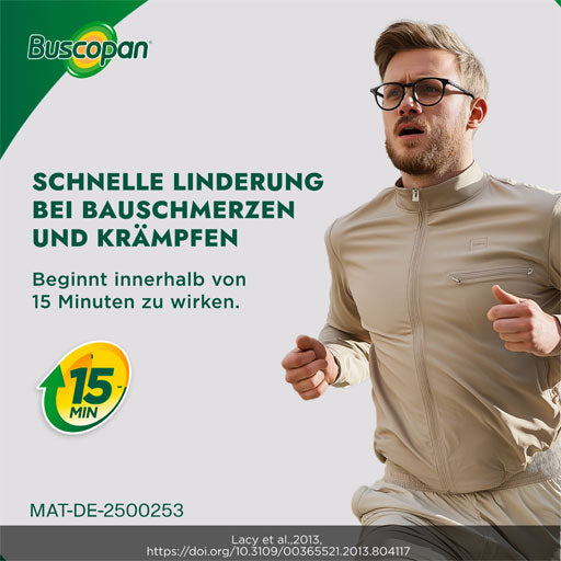 • Irritable bowel syndrome (IBS): frequent painful abdominal cramps along with changes in bowel movements are symptoms of IBS; here, too, Buscopan provides fast and effective relief from abdominal pain and cramps.