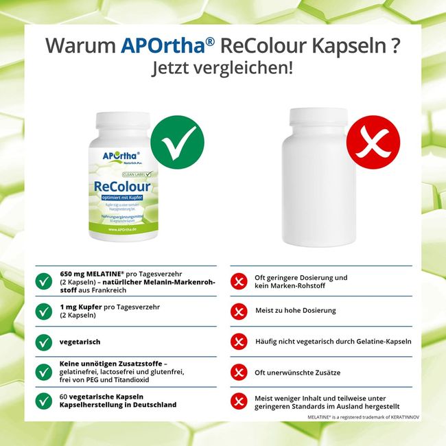 Product facts APOrtha® ReColour capsules with MELATINE® Melanin