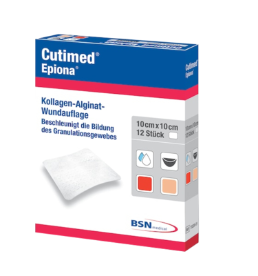 is a wound dressing for local interactive wound treatment. It is a sterile, freeze-dried matrix consisting of native collagen and calcium alginate. The collagen fibers form a three-dimensional open-pore matrix with a unique similarity to human dermis. This structure acts as a scaffold that boosts wound healing