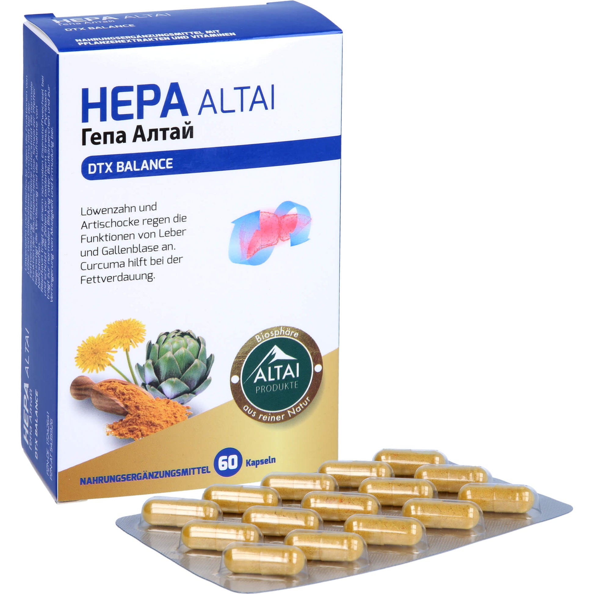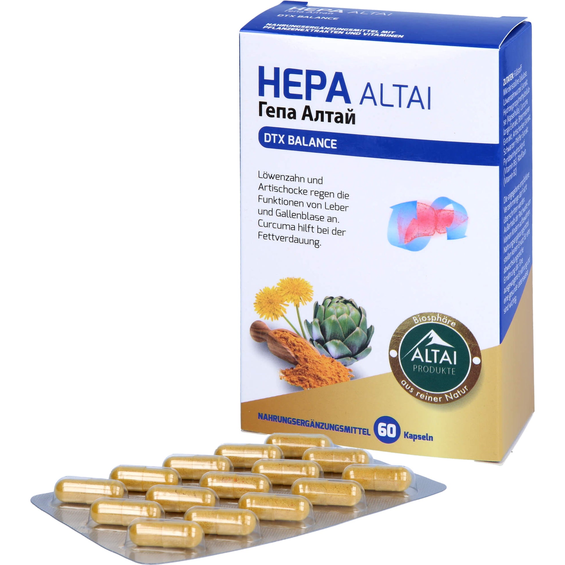 HEPA ALTAI Dandelion, artichoke for the liver, allbladder, Turmeric capsules