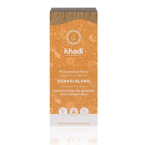 Khadi Natural Hair Color Dark Blonde nourishes the hair during coloring. Effective ingredients such as pomegranate and black walnut ensure a rich color result in a trendy, ash-toned dark blonde. Aloe vera provides the hair with intensive moisture. Khadi Hair Color is free of synthetic ingredients such as ammonia, peroxides, and parabens.