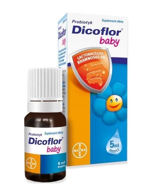 - Dicoflor drops a dietary supplement for special medical purposes, probiotics for children which beneficially affect the microflora of children and infants. Reduces the duration of diarrhea and strengthens immunity.