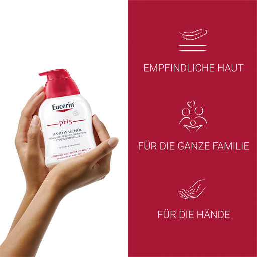 Eucerin pH5 Hand Wash Oil has been specially developed with extra mild surfactants to cleanse dry, sensitive hands. The formula with the natural pH value and dexpanthenol has been proven to preserve the skin's natural protective function and resilience.