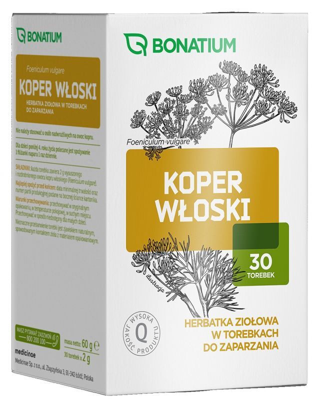 Fennel fruit has antispasmodic and carminative properties . Herbal tea in tea bags. Fennel fruit has been used for years. This herb is familiar to every mother. Fennel supports breast milk production, soothes the throat and larynx, and helps with flatulence and abdominal cramps.