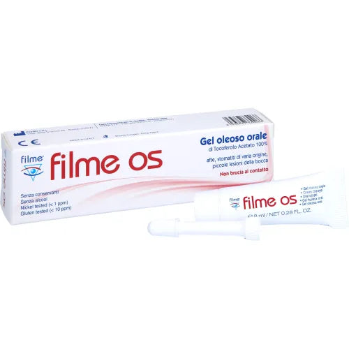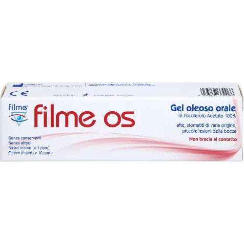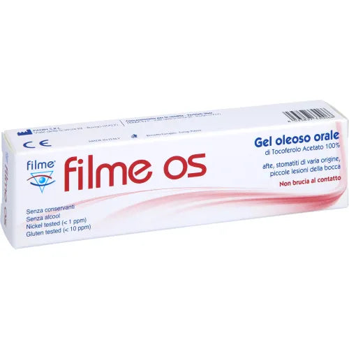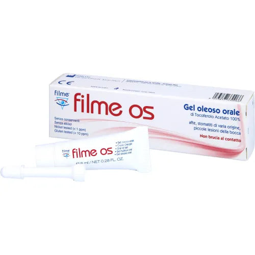 FILME OS is a medical product based on tocopherol acetate (vitamin E) that forms a protective film on the oral mucous membranes and protects small injuries in the mouth area from external influences. It relieves pain in inflamed and traumatized mucous membranes and reduces the risk of further irritation. The protective film created by vitamin E supports the physiological healing processes. FILME OS can be applied to aphthous ulcers, various types of stomatitis and small lesions caused by braces or fixed or mobile prostheses. filme OS does not burn on contact and does not contain any colorants or preservatives. Suitable for the treatment of aphthous ulcers in children and adults.