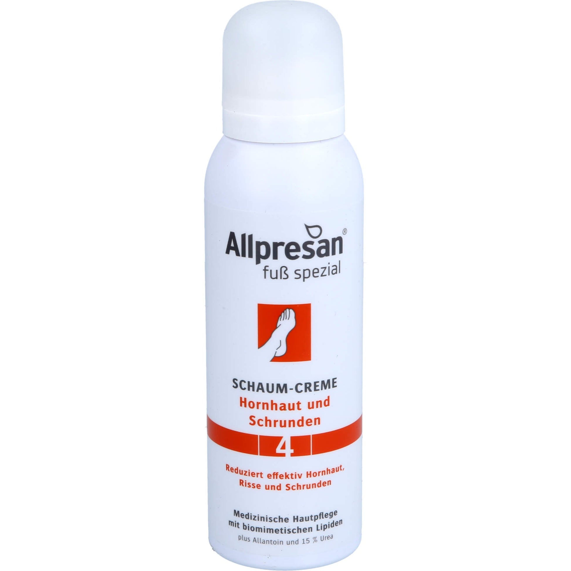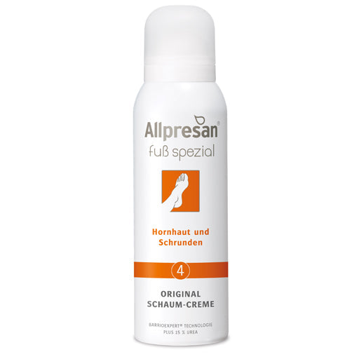Allpresan Foot Special No. 4 Original Foam Cream was developed for the daily care of calloused foot skin. The Original Foam Cream specifically targets superficial calluses and cracks. The foam cream, with BarrioExpert technology, 15% urea, and an active skin protection complex, is specially formulated to meet the needs of calloused skin.