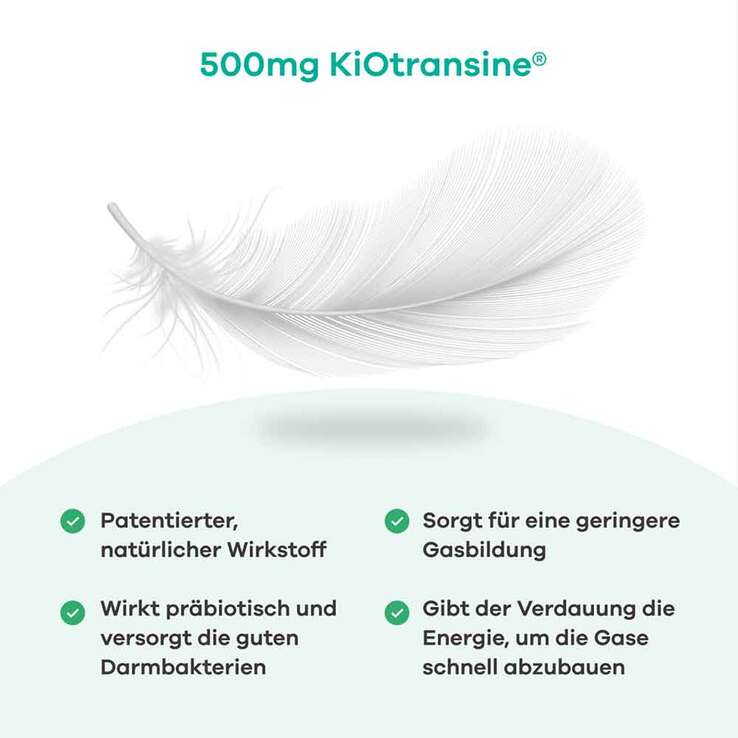 Ingredients: 500mg KiOtransine®, 250mg Simethicone, Sorbitol, Silicon Dioxide, Gum Arabic, Xanthan Gum, Vanilla Flavor, Sucralose, Acesulfame K