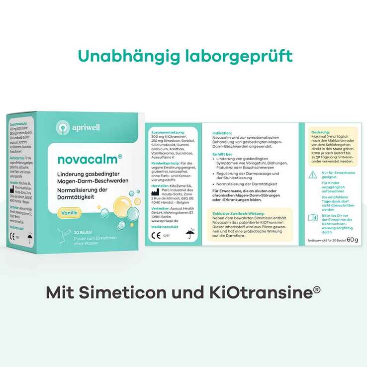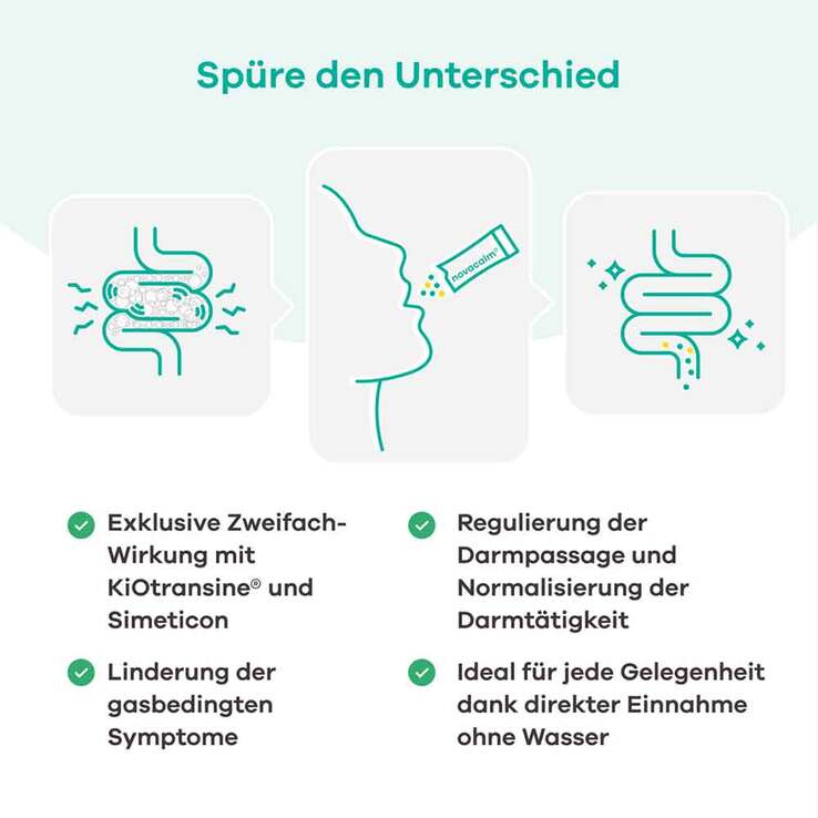 novacalm® is intended for the symptomatic treatment of gas-related gastrointestinal complaints and is used for: