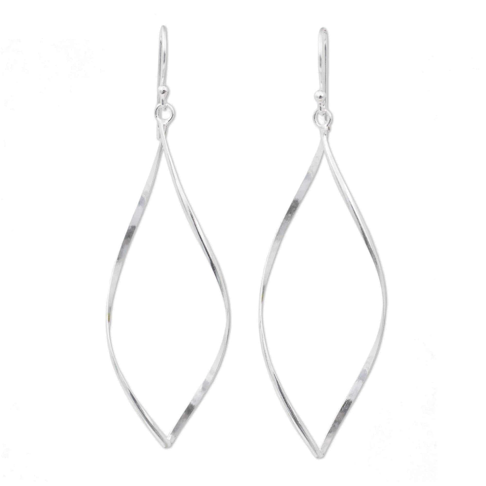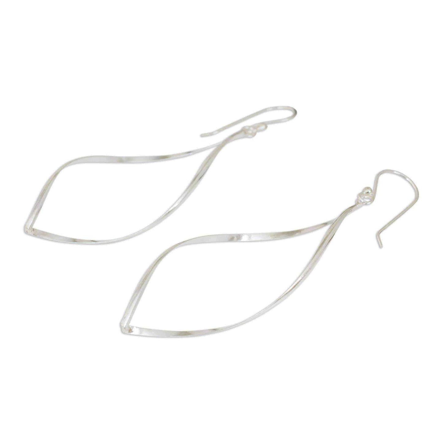 Tendrils of polished sterling silver form marquise-shaped loops in dangle earrings from Pichaya in Thailand. The elegantly curving earrings swing from sterling silver hooks.