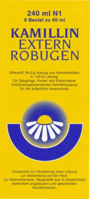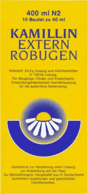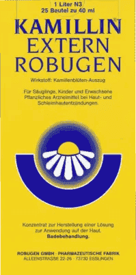 KAMILLIN External Robugen, chamomile flower, itching vagina, haemorrhoids, eczema Precautions for use and warnings: Do not use around the eyes, for inhalation or for internal colonic irrigation. The widespread use of chamomile as a food has so far yielded no evidence of risks during pregnancy and breastfeeding. This also applies to external use. Results of experimental investigations are not available. Overdoses are not known.