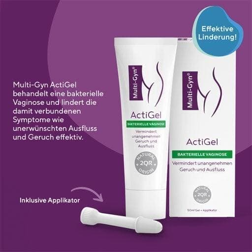 Symptoms of bacterial vaginosis often include a fishy odor and watery discharge. Multi-Gyn ActiGel treats bacterial vaginosis and its associated symptoms such as unwanted discharge and odor. Treat symptoms with Multi-Gyn ActiGel for effective relief. Multi-Gyn ActiGel improves the vaginal flora, supports tissue regeneration and optimizes the vaginal pH value. Each tube contains approximately 25 uses.