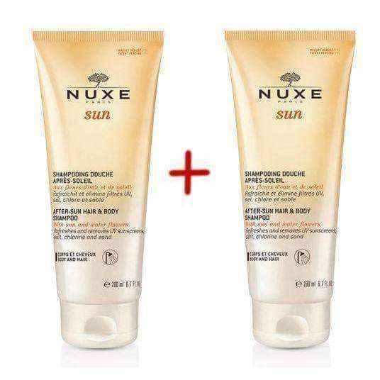 - Holiday cosmetic 2in1 Nuxe Sun Caring shower gel after sunburn easily wash away from your skin remains of cosmetics for sun and sand, and salt. Now available in kit 1 + 1 Free sensational price!