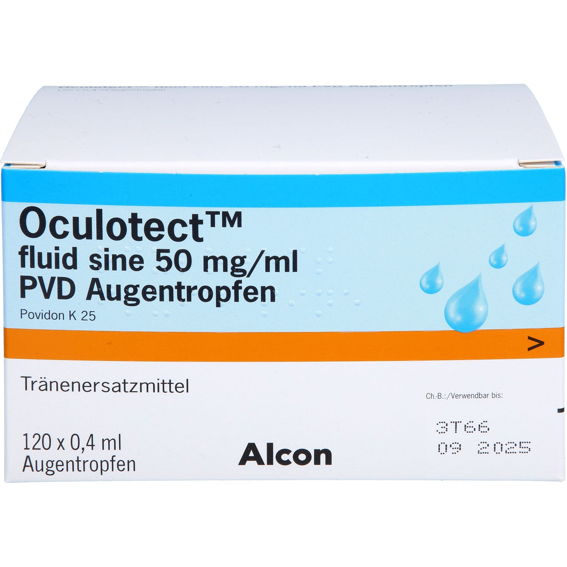 Oculotect fluid sine 50 mg/ml PVD eye drops. Active ingredient: Povidone K 25. Indications: Symptomatic treatment of dry eye syndrome (tear substitute for poor tear film quality or insufficient lubrication of the ocular surface), use as a wetting agent for hard and soft contact lenses.
