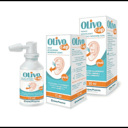 OLIVOCAP spray to remove ear wax is a product characterized by a natural and safe for the health of the composition. Its use effectively dissolves earwax and helps eliminate traffic jams woskowinowych.At the same time preventing them from re-forming. It supports the natural self-cleaning process of ear wax. Also possesses moisturizing properties. Please note that accumulates earwax may contribute to loss of hearing, of pain, discomfort or cough. Hearing loss is the result of blocking the ear canal by a cumulative deposits of wax and reducing or preventing adequate access sound waves to the eardrum. Cough is the result of stimulation of the nerves are common to the ear canal and throat, the ear wax which causes a feeling of 'tickling in the throat. " If earwax oppresses the eardrum, there may be pain or discomfort. OLIVOCAP spray to remove ear wax does not contain preservatives.
