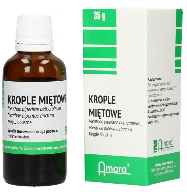 Peppermint Drops contains an ethanol-water macerate of peppermint leaves and peppermint oil. This product was prepared according to the recipe included in the Polish Pharmacopoeia VI. The drug has an antispasmodic effect in digestive disorders.