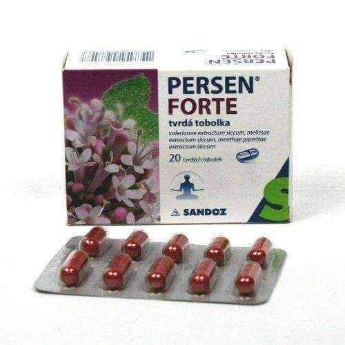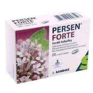Persen Forte is a drug characterized by a natural composition. It contains extract of valerian extract, lemon balm and peppermint extract. Thanks to them contributes to a significant reduction of emotional tension and relieve stress. Effectively shortens the time needed to fall asleep and prevents night awakenings. A relaxing and calming effect. Persen Forte is in the form of capsules for oral use.