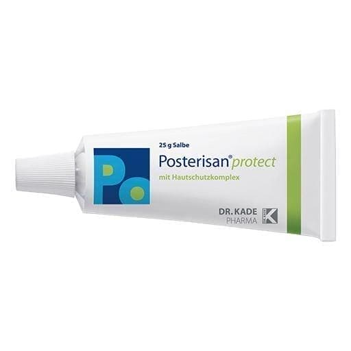 Salbe Posterisan protect contains a skin protection complex made from jojoba wax, yellow beeswax and cetyl stearyl isononanoate. Other ingredients include wool wax, butylated hydroxytoluene, white vaseline, purified water and benzyl alcohol.
