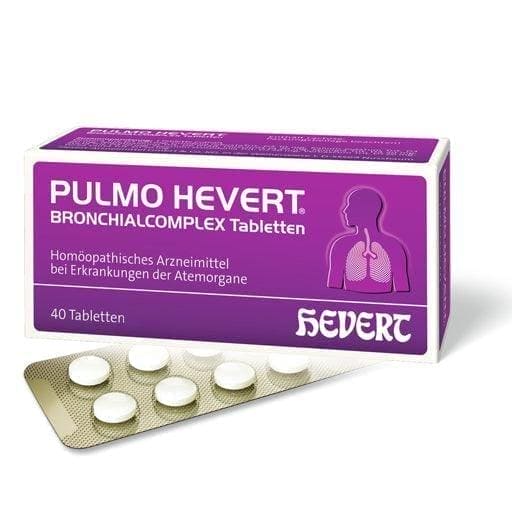 Pulmo Hevert Bronchialcomplex Tablets are a reliable help for respiratory problems, such as those that occur with bronchitis. Irritable coughs and spasmodic coughs are relieved, stubborn mucus is loosened and excessive mucus production is stopped. Pulmo Hevert Bronchialcomplex Tablets are effective for acute respiratory infections, hoarseness and whooping cough as well as for chronic forms of cough. Taking it is easy - the tablets melt in the mouth.