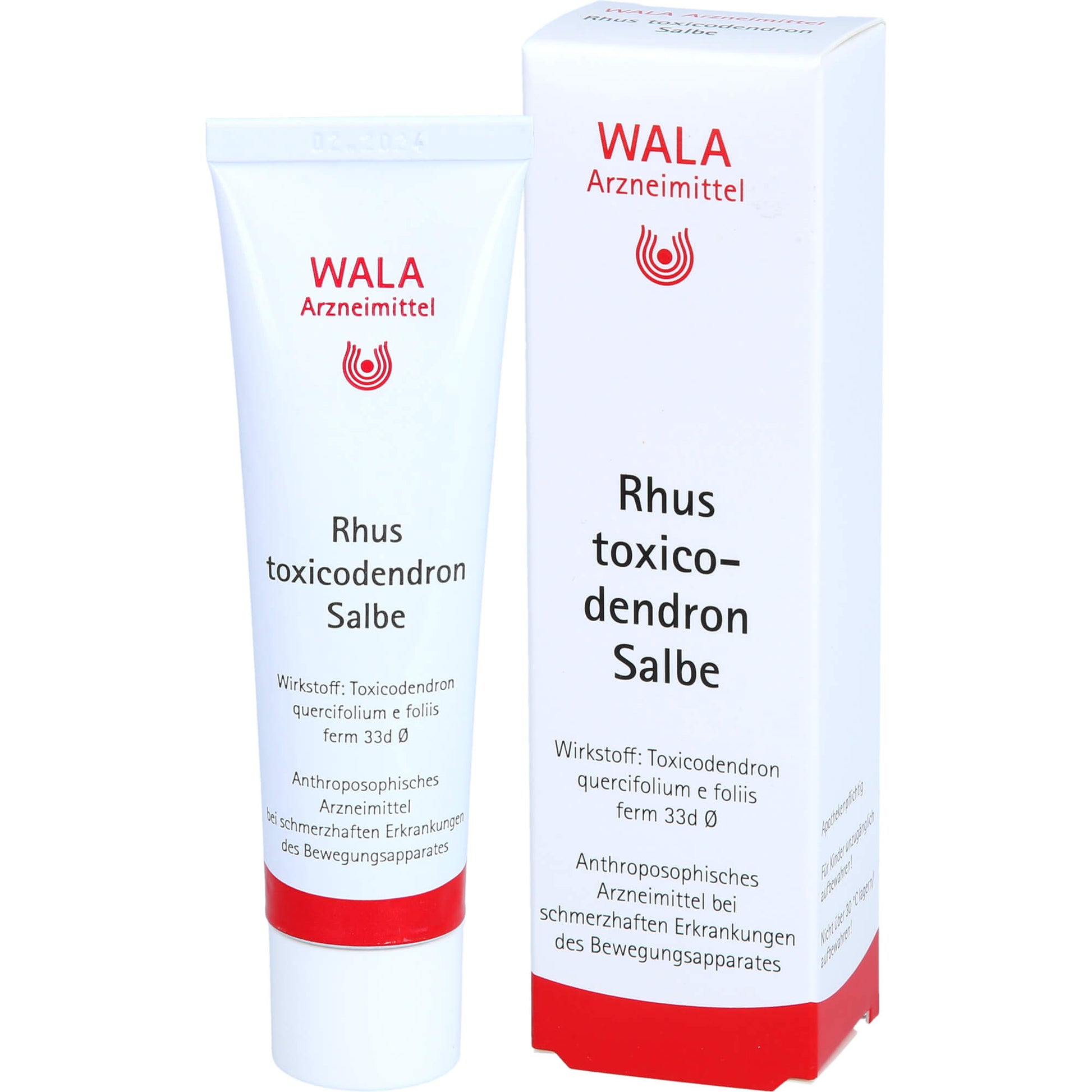Rhus toxicodendron ointment. Active ingredient: Toxicodendron quercifolium e foliis ferm 33d. Indications: According to anthroposophical understanding of man and nature. These include: painful disorders of the musculoskeletal system, e.g., joint inflammation (arthritis), including that of the spine; muscle pain (myalgia), nerve pain (neuralgia), and nerve inflammation (neuritis); herpetiform skin diseases.