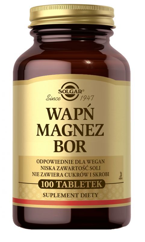 - The combination of beneficial effect of calcium, magnesium and boron in one tablet is a proposal from Solgar. Calcium, Magnesium plus Boron is a dietary supplement that will reduce fatigue and make the bones healthy.
