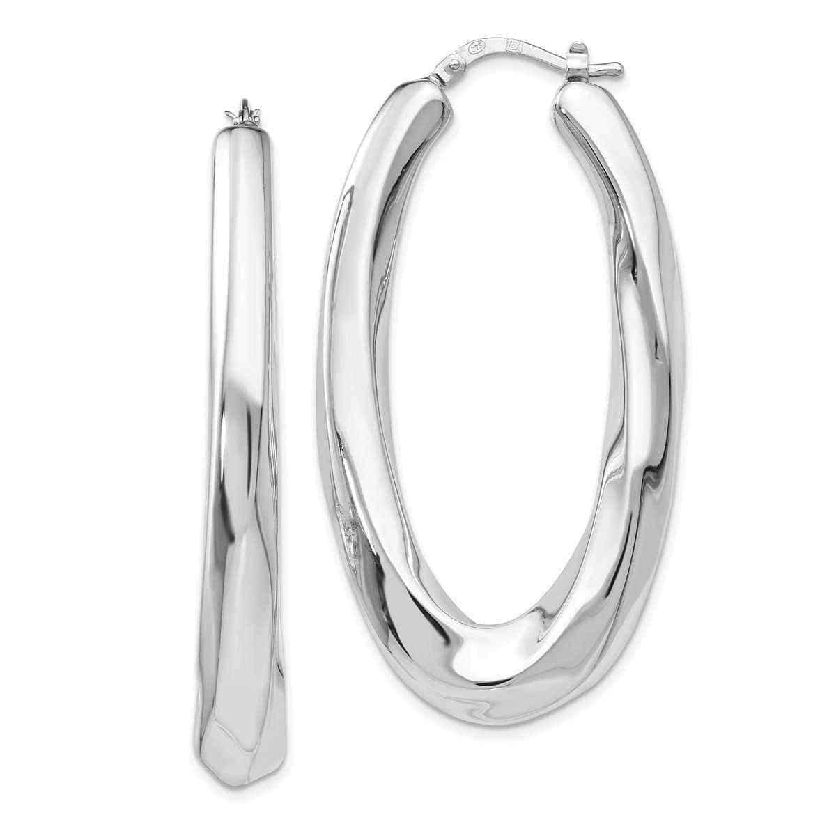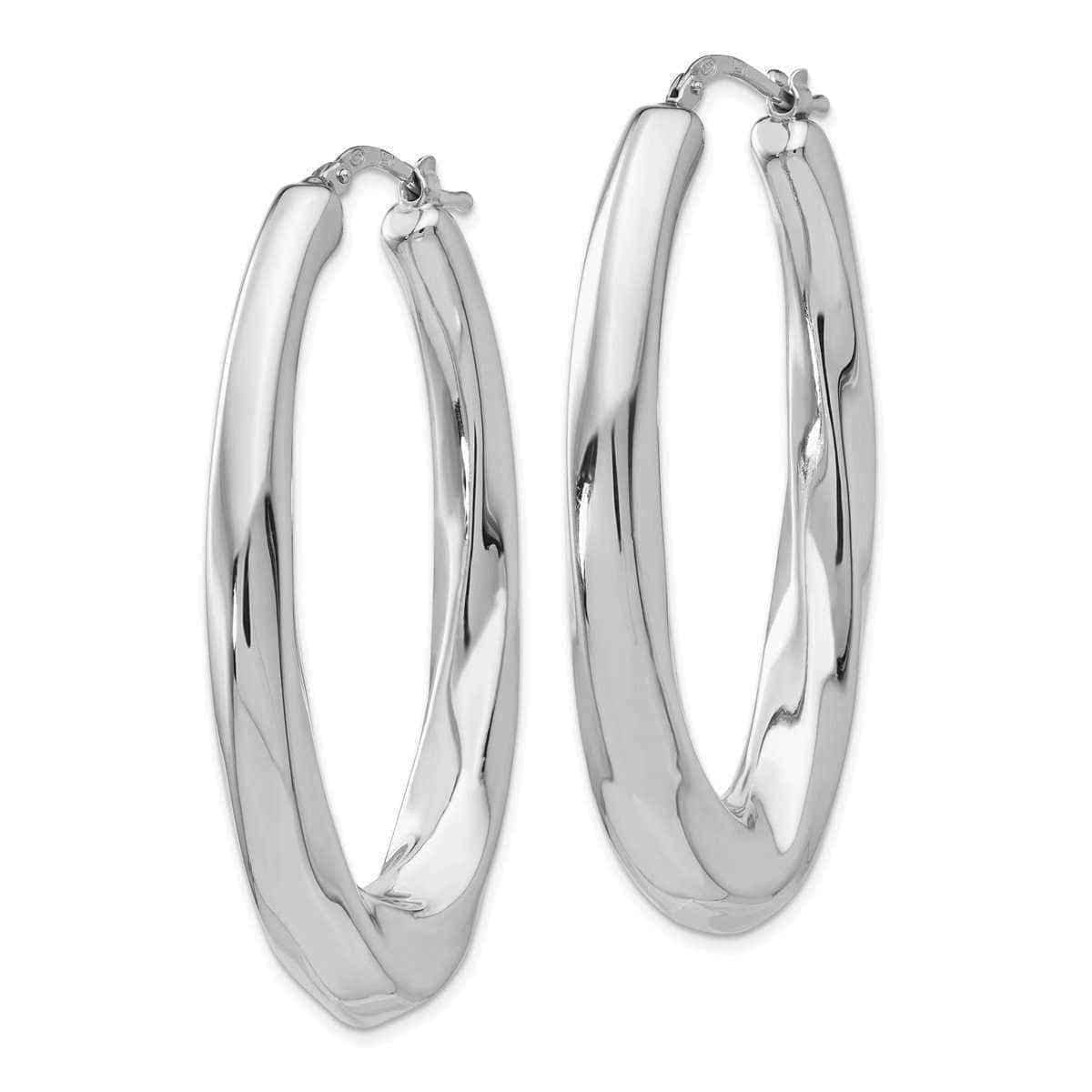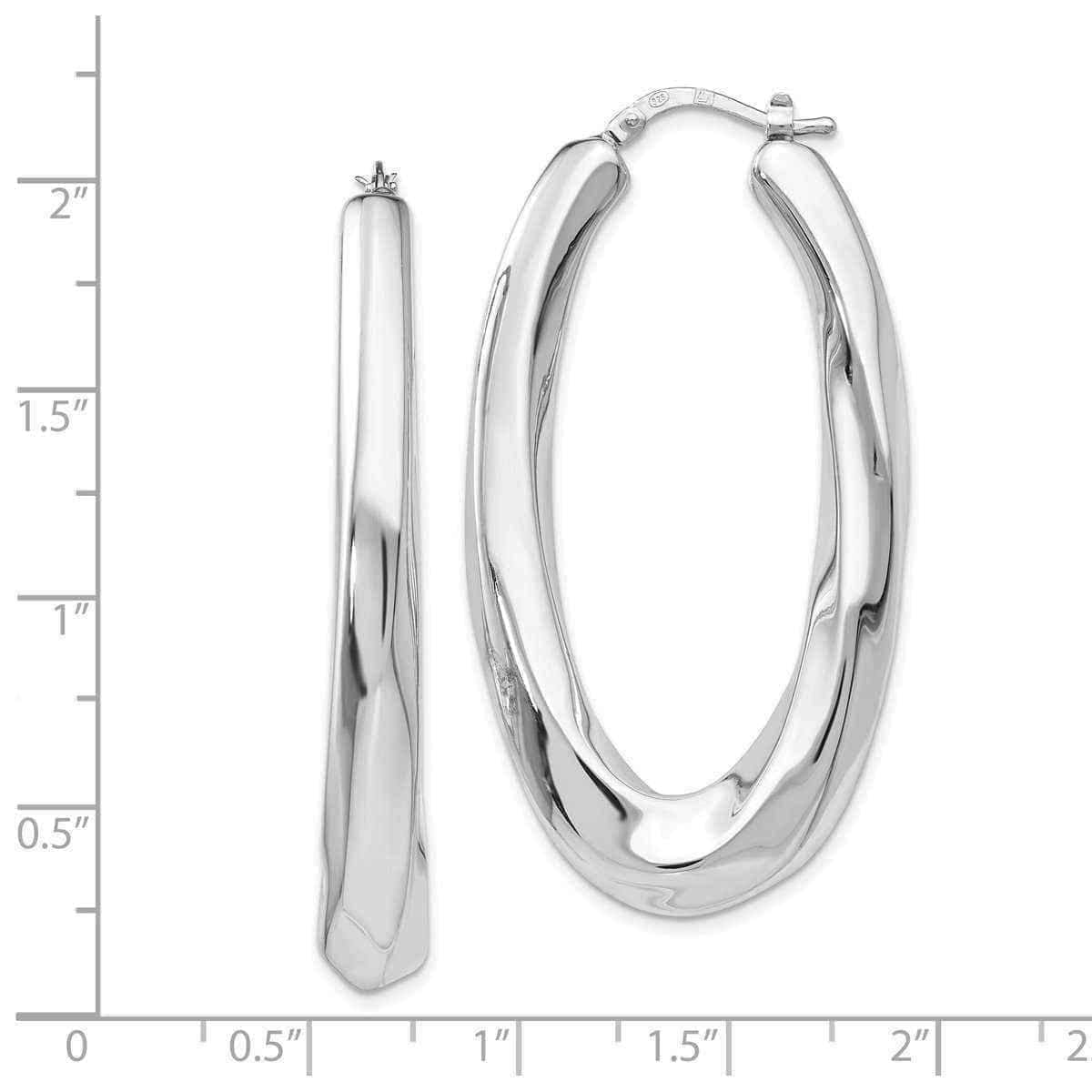 Brought to you by Versil, these earrings are crafted in rhodium plated sterling silver. These earrings are hollow. These are created in a hoop style. They have a polished finish. They have a wire and clutch style. The average gram weight of this piece is 7.6.