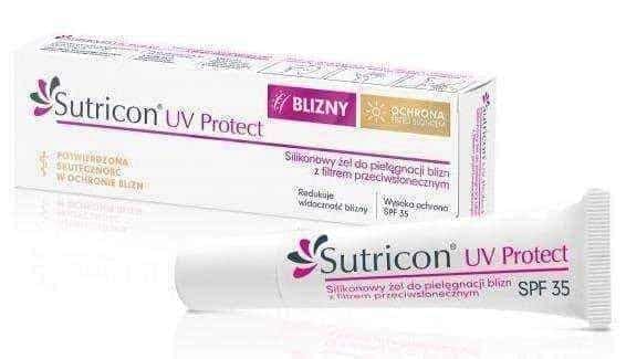- Silicone Suticon UV Protect SPF35 is a product recommended in the care of various types of scars (including post-traumatic, post-operative, stretch marks). The gel helps reduce the visibility of the scar, while protecting it from the sun's rays.