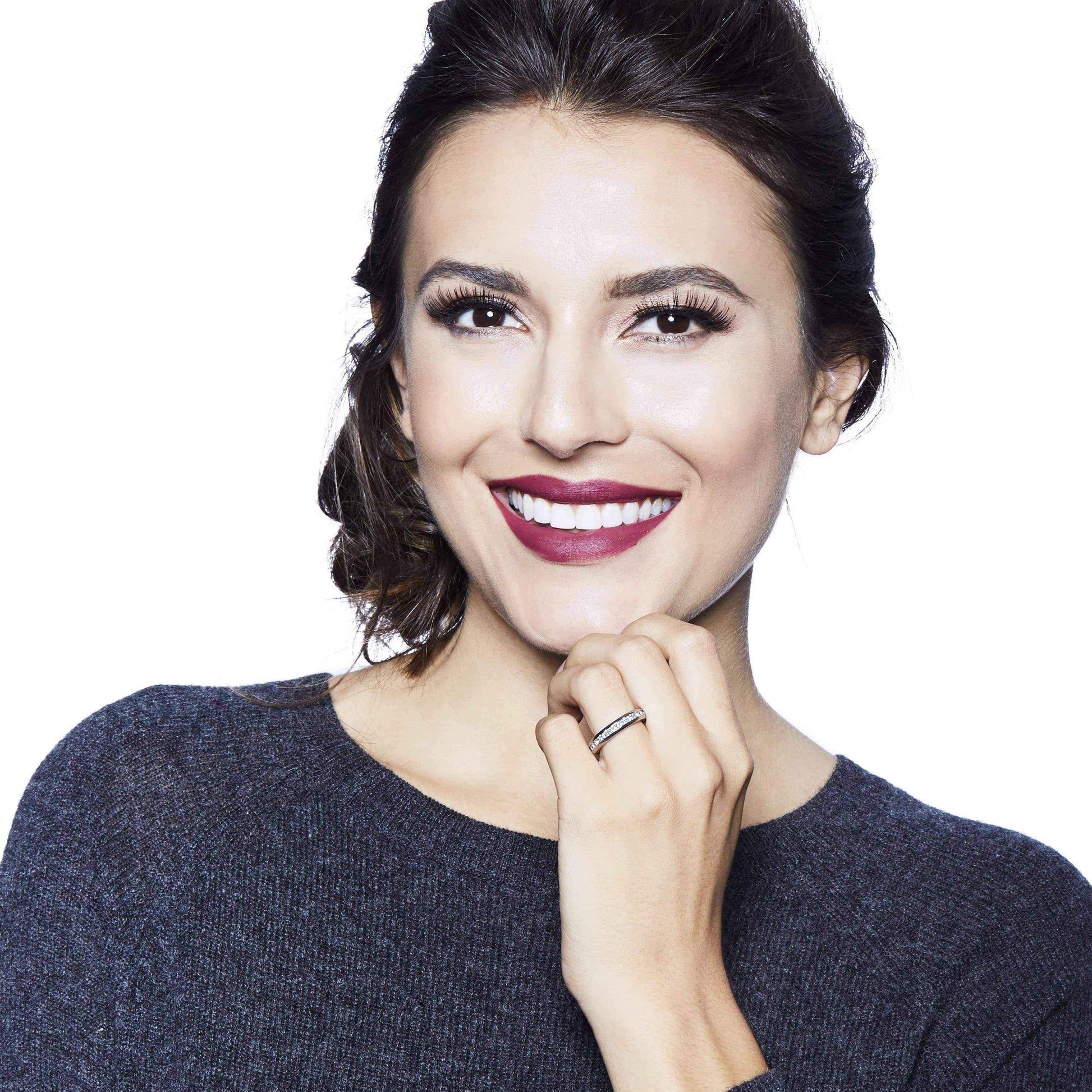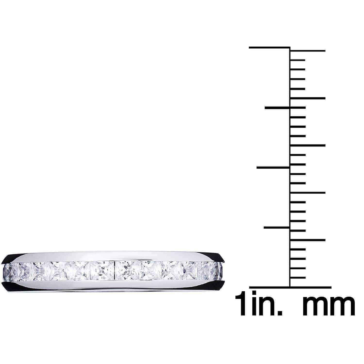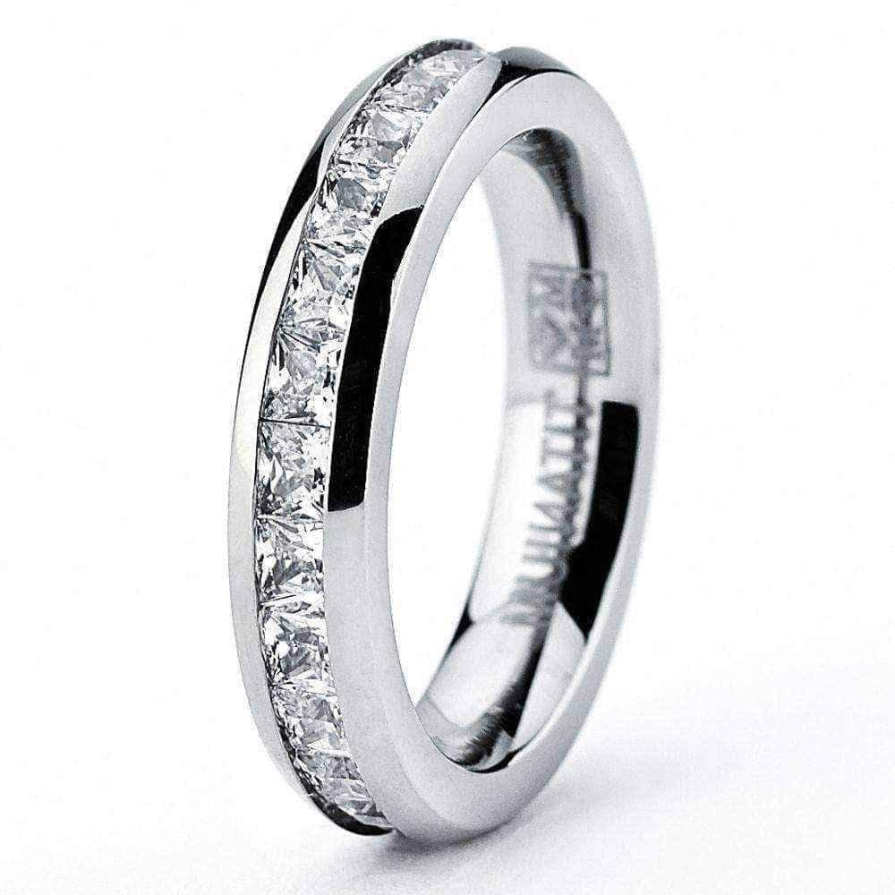 Titanium Eternity Ring. Bright and dazzling, this elegant eternity ring will add romantic sophistication to your life. The highly polished, scratch-resistant band is crafted from lightweight titanium. Glittering, princess-cut cubic zirconia are channel-set across the entire band, creating an endless, shimmering display.