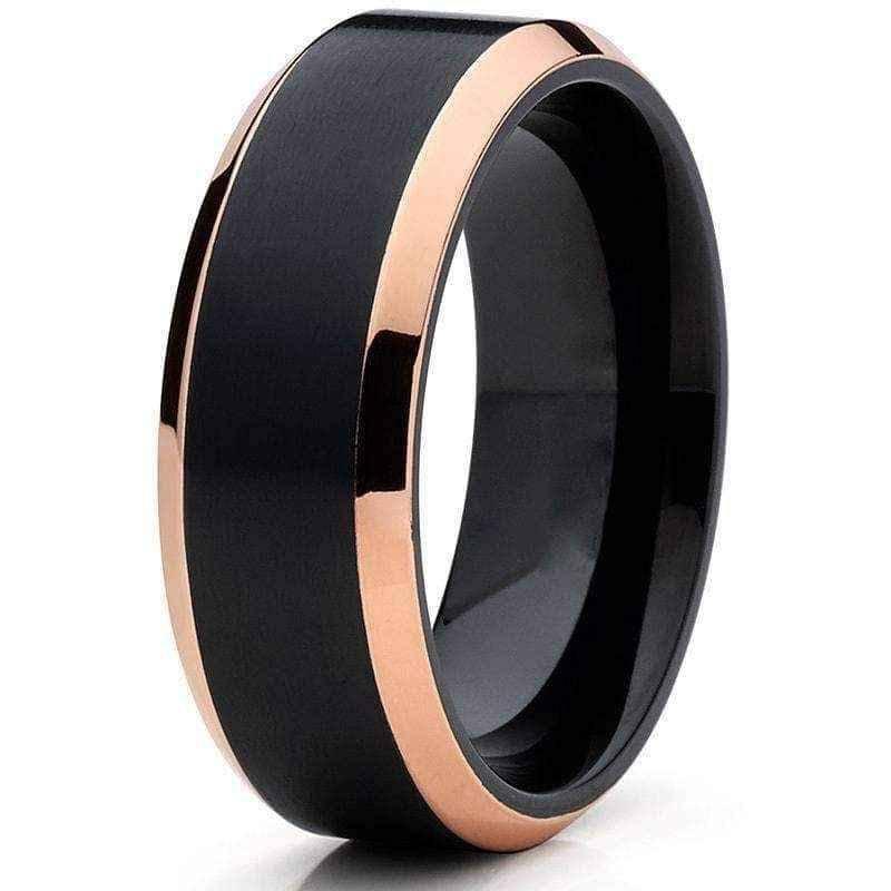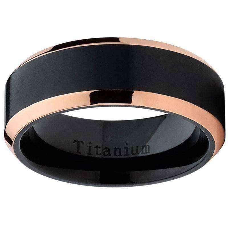 Titanium rings Oliveti Black Titanium and Rose Gold Men's Brushed Comfort Fit Band