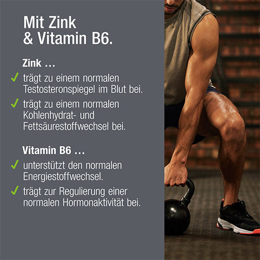 Two other valuable additions: 1. Zinc - for normal testosterone levels in the blood, carbohydrate metabolism and fatty acid metabolism.* 2. Vitamin B6 - to support glucose and protein metabolism and to reduce tiredness and exhaustion.*