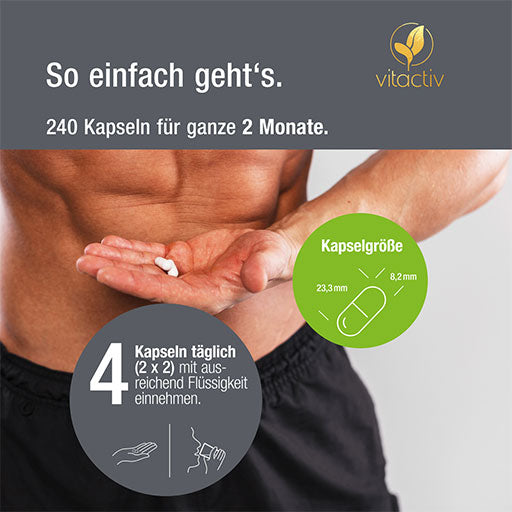 The recommended daily consumption must not be exceeded. Food supplements should not be used as a substitute for a varied, balanced diet and a healthy lifestyle. Keep out of the reach of small children. Store in a cool, dry place protected from light.