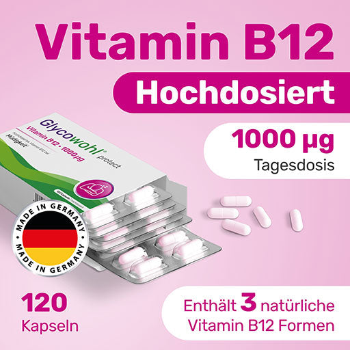 Glycowohl ® protect Vitamin B12 · 1000 μg is a high-dose, pharmacy-quality food supplement that is marketed under the umbrella of the well-known diabetes brand Glycowohl ® .