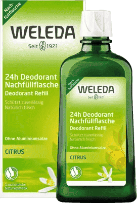 WELEDA Citrus 24h deodorant refill bottle, triethyl citrate, lemon oil