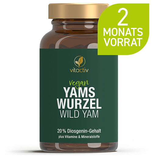 Would you like to buy YAMS CAPSULES? Then our natural complex of yams, vitamins and minerals is just right for you! YAMS WILD YAM contains high-quality yam extract with 20% plant-based diosgenin plus vitamin B6, vitamin C, selenium and zinc – to normalize hormonal activity, the nervous system, various metabolic functions and for cell protection. *